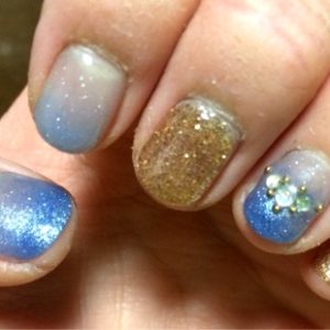 2015/11/15この前の休みの日、またまたネイルをしてきました☆ 今回は冬っぽい感じにしましたー☆ 私はブルーが好きなので、ブルーのグラ …